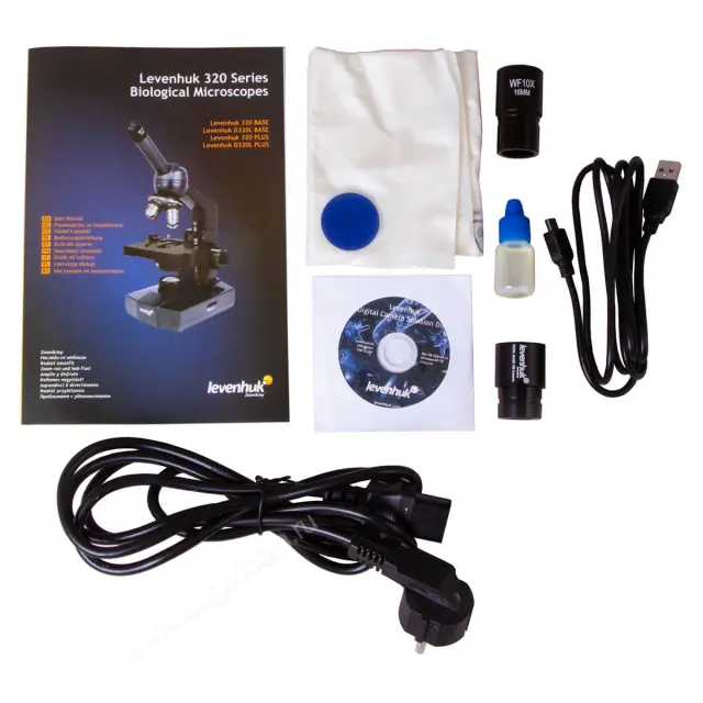В комплект поставки Levenhuk D320L BASE включены драйверы и специализированное ПО, совместимое со всеми востребованными типами ОС. Программно предоставляется возможность регулировки яркости и выбора размера изображения. В качестве нижней подсветки служит галогенная лампа с сетевым питанием и функцией регулировки яркости. Наличие синего светофильтра позволяет корректировать цветопередачу, добиваясь естественности оттенков, что важно, например, при изучении гистологических срезов, исследовании окрашенных тканей и т.п.
