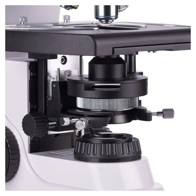 | Конденсор | центрируемый и регулируемый по высоте конденсор Аббе NA 1,25 с регулируемой апертурной диафрагмой и слотом для слайдера темного поля и фазового контраста; тип крепления "ласточкин хвост" |