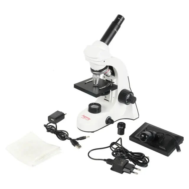 - 1 Штатив с револьверным держателем на 3 объектива, монокулярной насадкой, столиком, светодиодными подсветками проходящего и отраженного света
