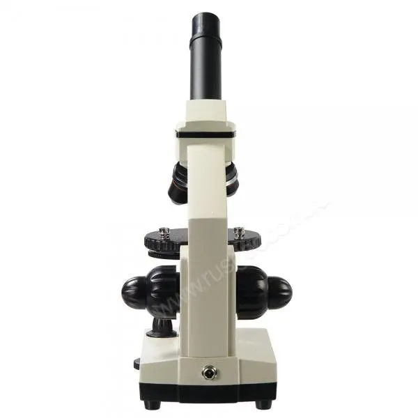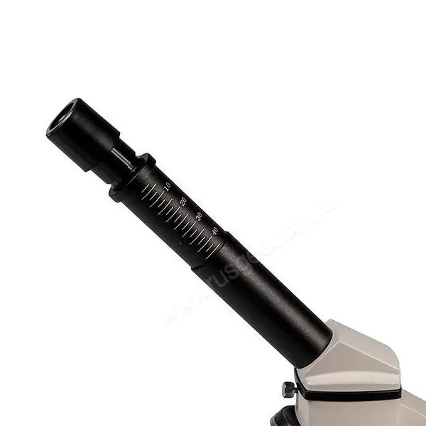 - 1 Штатив микроскопа с наклонным окулярным тубусом, встроенным осветителем отраженного света с регулировкой яркости (светодиод) и трехгнездным револьвером