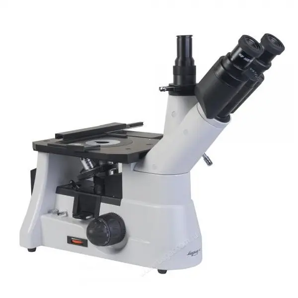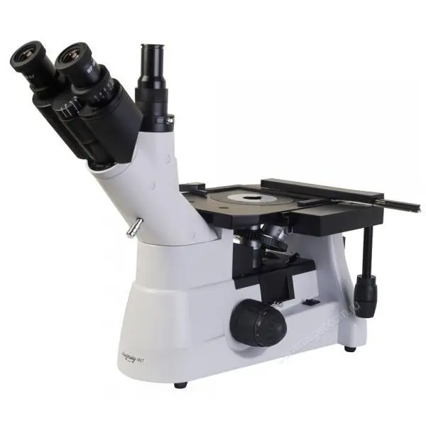 Оснащенный неподвижным предметным столиком, микроскоп используется для осмотра крупногабаритных объектов. В процессе работы предметный столик сохраняет неизменное положение – настройка резкости производится путем перемещения по высоте револьверного узла с объективами, что удобно при работе с металлами и сплавами.