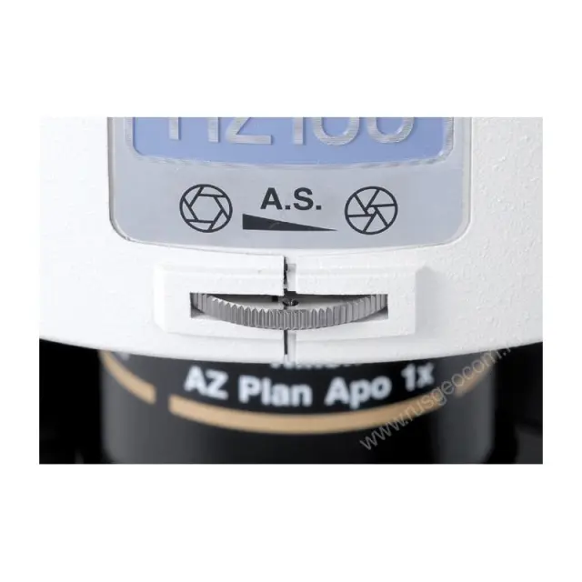 Механизм «click stops» монотрансфокатора значительно упрощает задачу по обеспечению воспроизводимости условий исследования. Фокусировка осуществляется не только с помощью рукоятки на штативе AZ100 (ход штатива 85 мм.), но и с помощью механизма перемещения столика (ход столика 10 мм.), что позволяет проводить исследования образцов с поверхностью сложной формы. Апертурная диафрагма позволяет свободно менять контрастность и глубину поля, в зависимости от особенностей образца.