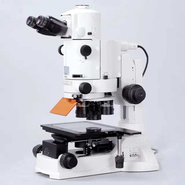- AZ100M - предназначен для проведения исследований в светлом поле, флуоресценции, методом ДИК и поляризованном свете, оснащается моторизированной системой фокусировки и возможностью установки моторизированного предметного стола (например, стол PRIOR PS III);