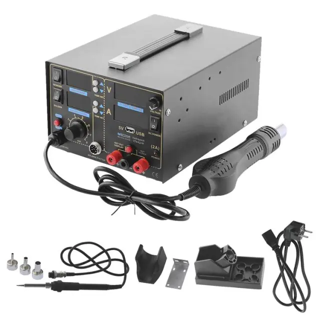 Многофункциональная паяльная станция 3 в 1 МЕГЕОН 00503 объединяет в себе функции термофена, паяльника и двухканального источника питания, что делает его незаменимым помощником как для профессионалов, так и для любителей.