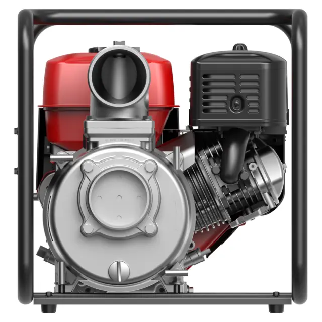 SUNREKA GWP100T смонтирована в жесткой стальной раме, которая служит защитным каркасом для двигателя и насосной улитки, а также позволяет надежно зафиксировать помпу на неровных поверхностях строительной площадки. Увеличенные патрубки 4″ позволяют использовать стандартные промышленные рукава, минимизируя потери давления и обеспечивая максимально быстрый отвод воды.