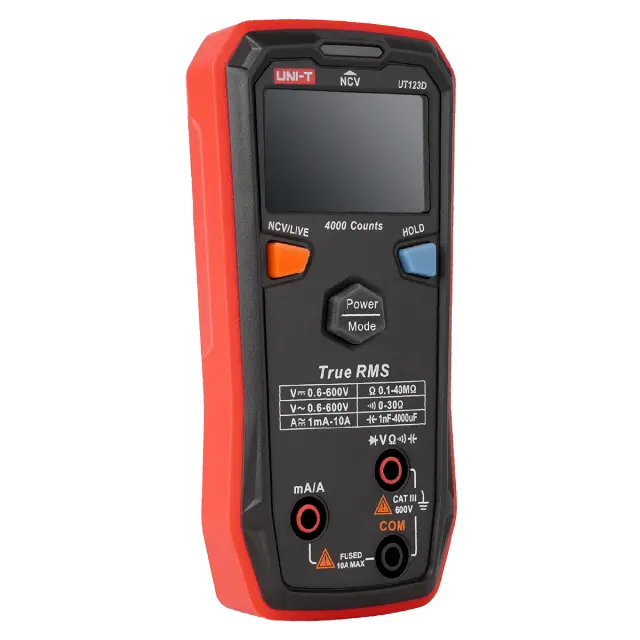 Безопасность при работе с электрическими устройствами — это приоритет. UNI-T UT123D оснащен трехцветным светодиодным индикатором NCV, который позволяет оценить уровень переменного напряжения. Это особенно полезно при проведении работ в потенциально опасных условиях. Кроме того, мультиметр имеет функцию идентификации фазового провода (LIVE) с звуковой и световой индикацией, что обеспечивает дополнительную защиту пользователя.