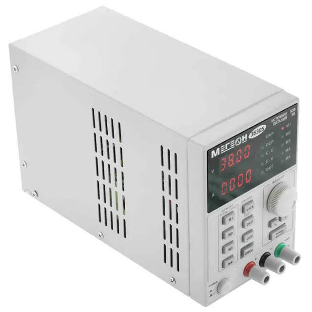 Одноканальный программируемый линейный источник питания МЕГЕОН 36305 представляет собой лабораторный прибор с высокостабильными выходными параметрами, который может использоваться для обеспечения работы радиоэлектронного, цифрового и электротехнического оборудования в ходе отладки, ремонта и диагностики. От модели 36303, выполненной в таком же форм-факторе в вертикальном корпусе, с идентичным расположением органов управления и индикации и аналогичным перечнем функций, устройство отличается повышенной мощностью, обеспечивая выдачу постоянного тока максимальным номиналом до 5 А при регулируемом напряжении от 10 мВ до 30 В.