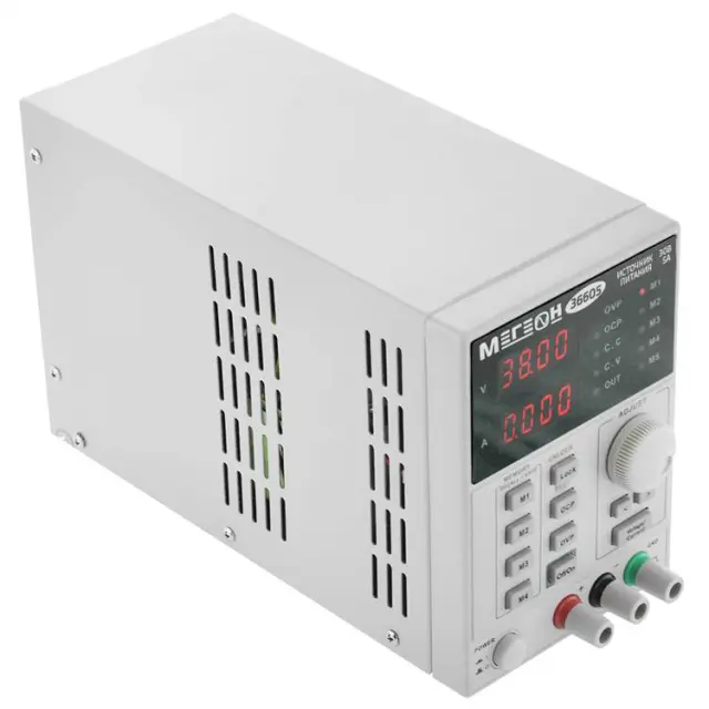 Одноканальный программируемый линейный источник питания МЕГЕОН 36605 представляет собой высокопроизводительный лабораторный прибор, построенный на основе трансформаторной схемы преобразования, оснащенный встроенной защитой от перегрева, короткого замыкания, перенапряжения и превышения силы тока с настраиваемыми порогами. Он обладает наибольшей мощностью среди моделей серии МЕГЕОН 36xxx, обеспечивая возможность питания оборудования, приборов и систем с рабочим напряжением до 60 В и токопотреблением до 5 А. Переключение режимов стабилизации напряжения или силы тока производится автоматически при достижении выбранных при настройке пороговых значений, без провалов и бросков мощности в момент перехода, что позволяет выполнять диагностику и тестирование прецизионных устройств.
