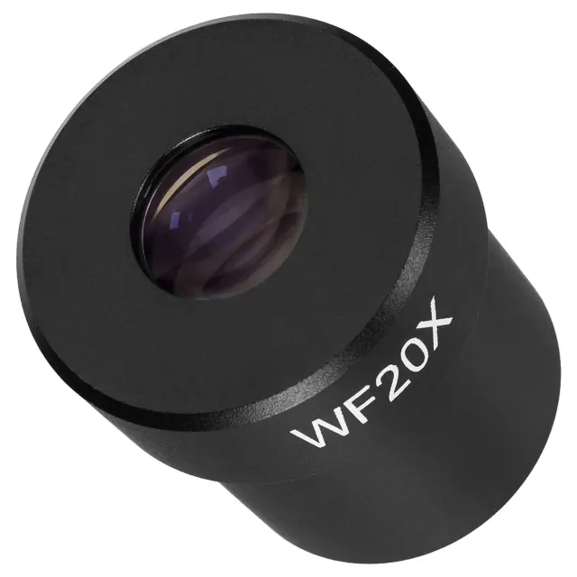 Окуляр для микроскопов MAGUS. У этой модели окуляра нет кольца диоптрийной подвижки, коррекцию можно выполнять с помощью кольца на тубусе микроскопа. Окуляр используется с объективами, имеющими увеличения 4, 10 и 20 крат. Посадочный диаметр окулярного тубуса – 30 мм. Предусмотрен вынос выходного зрачка 10 мм, чтобы было комфортно наблюдать в очках. Линзы окуляра изготовлены из оптического стекла, корпус из меди.