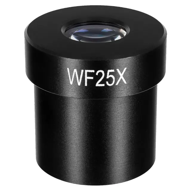 Окуляр с увеличением 25 крат и с полем зрения 9 мм. Используется с объективами 4 и 10 крат. Разработан специально для микроскопов MAGUS с диаметром окулярного тубуса 30 мм. Кольцо диоптрийной коррекции на окуляре не предусмотрено, резкость подводят с помощью кольца на тубусе микроскопа. Для наблюдателей, носящих очки, предусмотрен вынос выходного зрачка 10 мм. Линзы изготовлены из оптического стекла, корпус выполнен из меди.