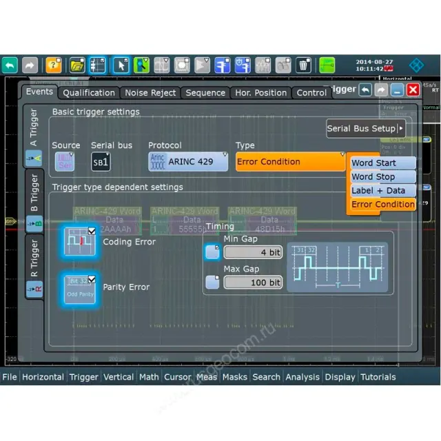 Опция синхронизации и декодирования последовательных шин данных ARINC 429 Rohde & Schwarz RTA-K7