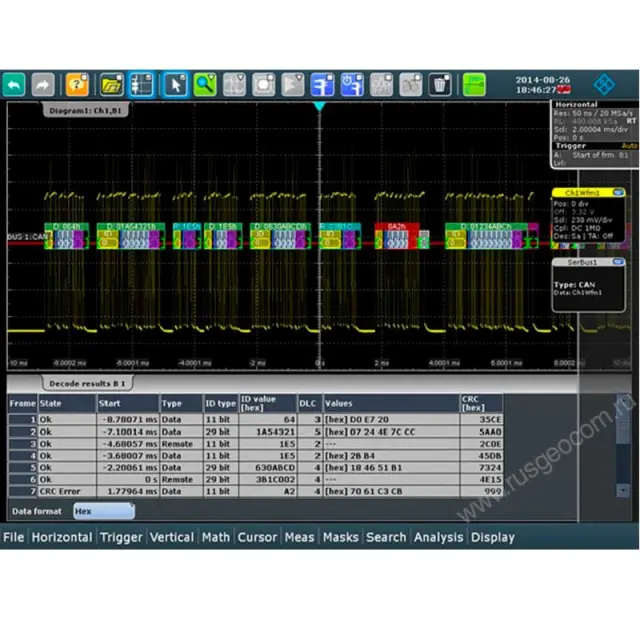 опция синхронизации и декодирования последовательных данных CAN/LIN для осциллографов Rohde & Schwarz RTE1000