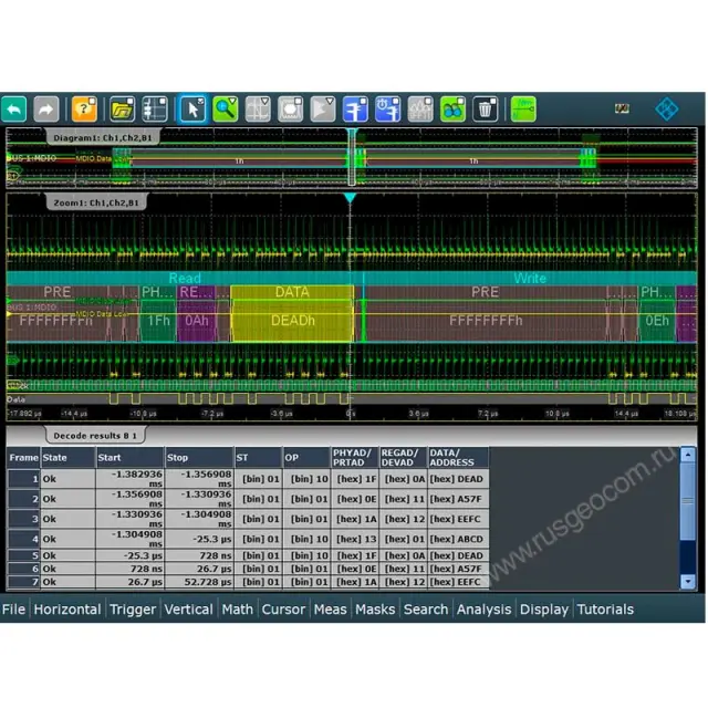 опция синхронизации и декодирования последовательных данных MDIO для осциллографов Rohde & Schwarz RTE