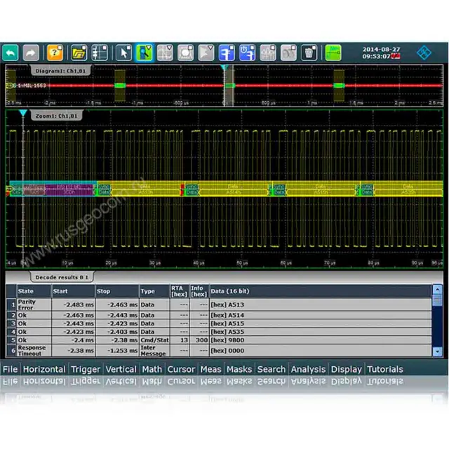 опция синхронизации и декодирования последовательных данных MIL-STD-1553 для осциллографов Rohde & Schwarz RTE1000