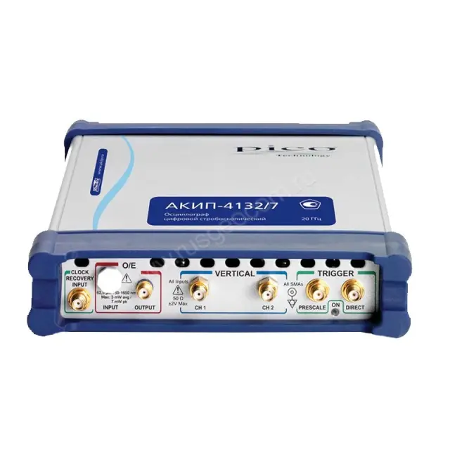 | Особенности | Цифровой стробоскопический USB-осциллограф. Максимальная частота стробирования до 1 МГц. Внешняя синхронизация до 2,5 ГГц, с делителем частоты до 15 ГГц. Встроенный генератор импульсов 60 пс. Автоизмерения (более 100 параметров включая измерение "глазковых" диаграмм (NRZ и RZ), БПФ и джиттера и др.), статистика измерений, маркерные измерения (ΔU, ΔT, ΔU/ΔT, F). Математические функции, включая быстрое преобразование Фурье (БПФ) в 2-х каналах. Отображение гистограмм параметров (напряжение/ время), усреднение, огибающая, послесвечение. Автоматизированный тест сигнала по "маске" (более 160 предустановленных шаблонов). | |
