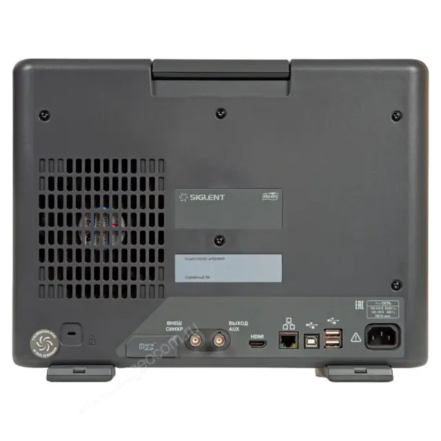 | Входы выходы | передняя панель: USB 3.0 Host (2), Выход калибратора 1 кГц, 3 В меандр задняя панель: USB 2.0 Host (2), USB 2.0 Device, LAN 10/100MbaseT (RJ45), слот Micro SD Card, External Trigger: ВНЕШ: ≤1,5 Вскз, ВНЕШ/5: ≤ 7,5 Вскз Auxiliary Output: Выход синхр. (3,3 В LVCMOS), Доп.Контр. Выход (3,3 В TTL) HDMI |
