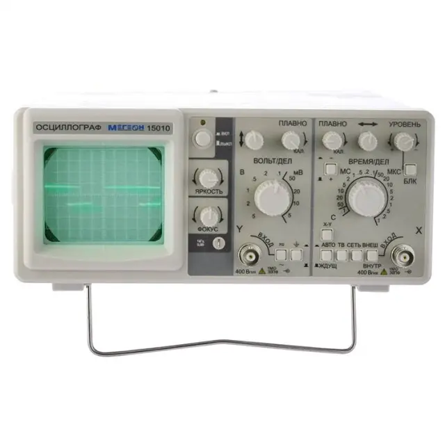 Обладая полосой пропускания 10 МГц, аналоговый осциллограф МЕГЕОН 15010 способен отслеживать сигналы в широком диапазоне напряжений – амплитудой от 10 мВ до 300 В с комплектным делителем, выдерживая суммарное перенапряжение при закрытом входе номиналом 400 В. Входной канал "Y" может работать в режиме с заземлением измерительной линии усилительного тракта либо с открытым состоянием по постоянному току или закрытым по переменному току. Это дает возможность с помощью данного изделия тестировать не только маломощные радиоэлектронные устройства, но и электросиловую аппаратуру. Поддерживается синхронизация не только от внутреннего или внешнего источника, но и от сети питания переменного тока или телевизионного импульса, например, при диагностике аналоговых видеосистем.