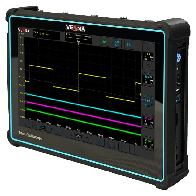 Осциллограф VESNA AVU2-403 — это специализированный автомобильный диагностический инструмент, разработанный для автосервисов, инженеров по техническому обслуживанию и разработчиков бортовой электроники. С полосой пропускания 300 МГц, частотой дискретизации до 2 Гвыб./с и четырьмя независимыми аналоговыми каналами, он обеспечивает детальный анализ даже самых быстрых импульсных сигналов в современных автомобилях — от сигналов датчиков коленвала и ДПДЗ до высокоскоростных шин CAN FD и LIN.