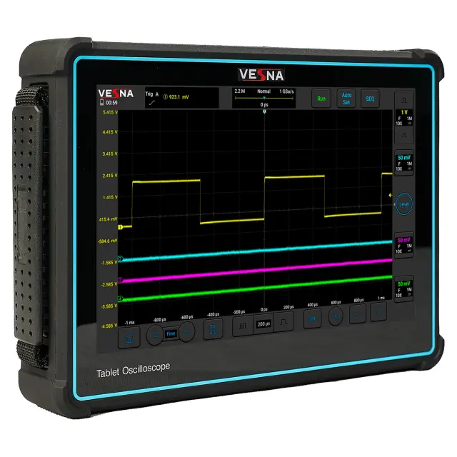 Осциллограф VESNA OVU1-401 — это портативный четырехканальный прибор, предназначенный для комплексного анализа многокомпонентных систем. С полосой пропускания 100 МГц, частотой дискретизации 1 Гвыб./с и памятью 110 млн отсчетов, он идеально подходит для отладки микроконтроллерных плат, промышленных контроллеров, систем управления и цифровых шин. Благодаря четырем независимым каналам, можно одновременно отслеживать тактовые импульсы, питание, данные и управляющие сигналы — без необходимости синхронизации нескольких приборов.