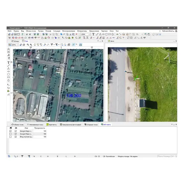 В ТИМ КРЕДО ФОТОГРАММЕТРИЯ поддерживается работа с растровыми картами, планами, аэрофотоснимками в различных форматах (CRF, BMP, TIFF, JPEG, PNG, TMD и т.д.), с веб-картами картографических Интернет-сервисов Google Maps и Bing, также возможно добавление пользовательских файловых серверов.