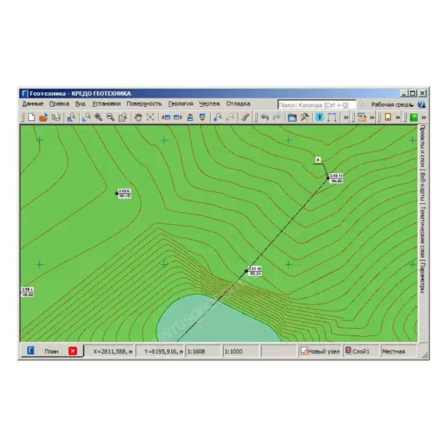 В качестве цифровой топографической основы в подсистеме ТИМ КРЕДО ГЕОТЕХНИКА используется настройка на уже существующую поверхность Рельефа, находящуюся в других проектах. Таким образом, исключается дублирование исходных поверхностей. Предварительно модель рельефа создается изыскателями в ТИМ КРЕДО или сторонних ПО.