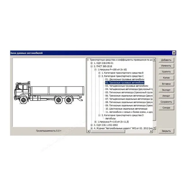 Базы автомобилей, материалов позволяют быстро заполнять либо редактировать исходные данные по автомобильному потоку, конструкции дорожной одежды.