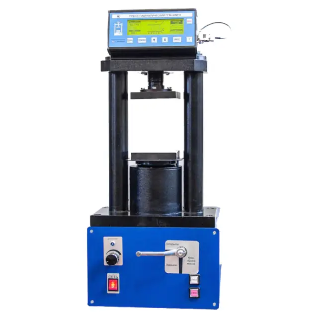 Пресс испытательный гидравлический малогабаритный ПГМ-50МГ4 относится к приборам неразрушающего контроля и предназначен для проверки качества и исследования прочностных характеристик строительных и других материалов путем выполнения линейного нагружения образцов с нормированной скоростью, с точным измерением величины прикладываемых силовых воздействий. Изделие оснащено опорной плитой с основанием размером 110 x 100 мм, при высоте рабочего пространства 160 мм, и обеспечивает предельное нагружение до 50 кН, при максимальном ходе цилиндра 10 мм, отличаясь от других моделей своей серии наименьшими массогабаритными характеристиками. Внесенный в Госреестр, контрольно-измерительный прибор может использоваться для испытаний стройматериалов согласно ГОСТ 10180, а также для экспертиз, сертификации и метрологических нужд