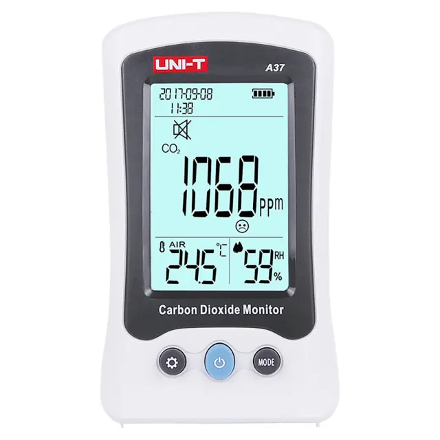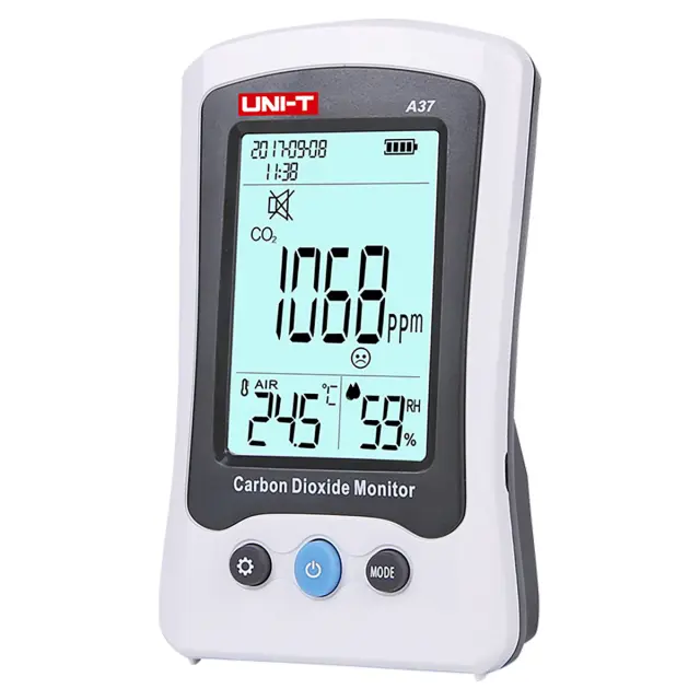 UNI-T A37 — это цифровой анализатор концентрации углекислого газа (CO₂), предназначенный для контроля качества воздуха в помещениях: офисах, классах, конференц-залах, ресторанах, школах и медицинских учреждениях. Высокая точность измерений позволяет своевременно выявлять превышение нормы CO₂, что критически важно для поддержания комфортной и безопасной атмосферы, предотвращения усталости, головных болей и снижения концентрации.