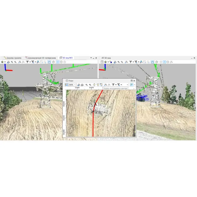 • автоматический поиск линий электропередачи (столбы и провода) по облаку точек с последующей интерактивной проверкой результатов;