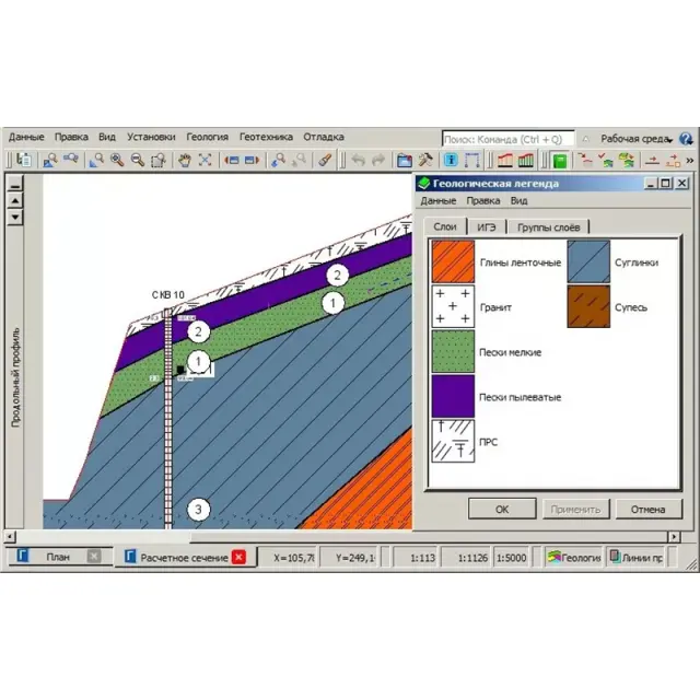В подсистеме ТИМ КРЕДО ГЕОТЕХНИКА основой геологической модели является Геологическая легенда, содержащая список грунтов объекта. Именно в Легенде задаются ф/м характеристики грунтов, необходимые для геотехнических расчетов.