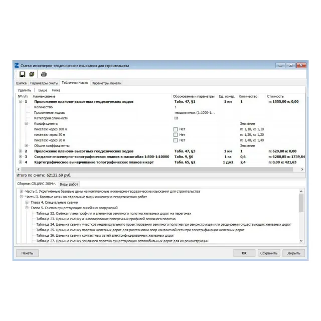 • смета на инженерно-геологические изыскания, смета на геодезические изыскания и работы, а также сметы на инженерно-экологические, инженерно-гидрометеорологические изыскания, на гидрографические, топографо-геодезические работы и проведение кадастровых работ (межевой план);