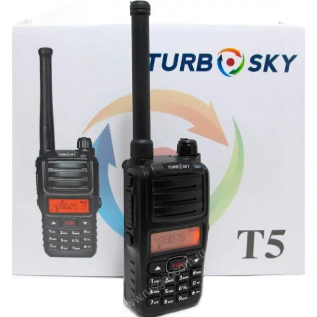 Рация Turbosky T5 оснащена жидкокристаллическим дисплеем и мощным передатчиком, а также имеет максимальное количество опций для организации общения по радиоканалу. Прибор предоставляет возможности гибкой настройки режимов работы и обеспечивает максимальную конфиденциальность и безопасность переговоров.