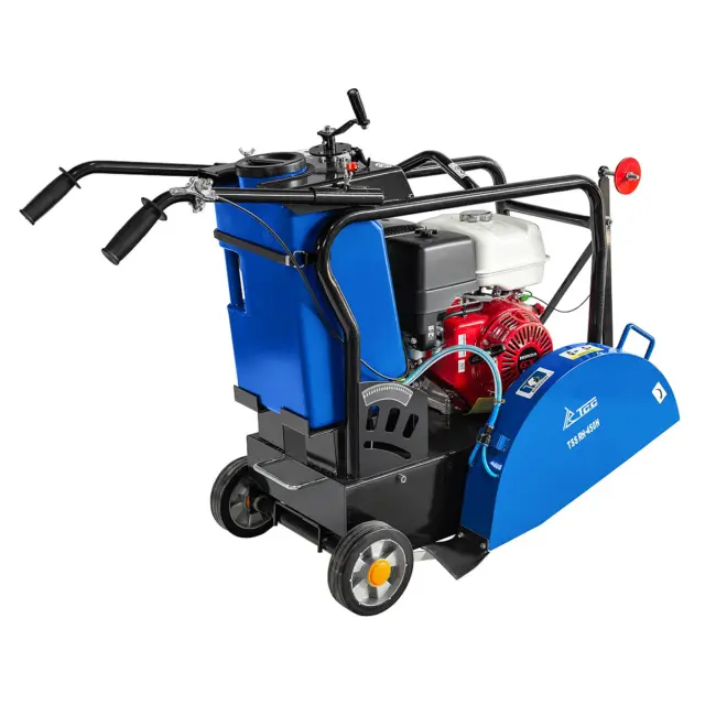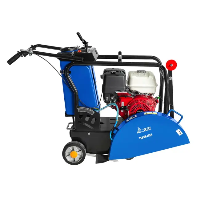 Двигатель резчика TSS RH-450H защищен прочной стальной рамой, которая не только обеспечивает надежную защиту, но и позволяет оператору легко перемещать инструмент по рабочей поверхности.