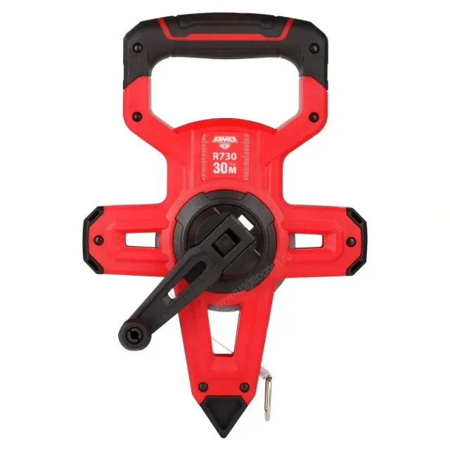 Рулетка измерительная AMO R730 длиной 30 метров - специализированный инструмент для строителей, геодезистов и кадастровых инженеров. Чаще всего она используется для измерений земельных участков, больших помещений и конструкций. Эта модель относится ко второму (II) классу точности, благодаря чему специалист может быть уверен в достоверности результатов и качестве полученных данных.