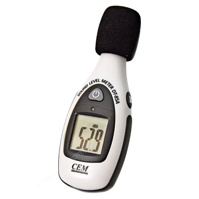 Шумомер CEM DT-85A относится к мобильным малогабаритным приборам с батарейным питанием, которые предназначены для оперативного контроля условий окружающей среды в ходе аттестации рабочих мест, а также проверки соответствия целевых объектов требованиям санитарных норм. Представляя собой цифровой измеритель, изделие определяет уровень акустических воздействий, создаваемых источниками шума, с отображением получаемых результатов на ЖК-дисплее в дБ. Помимо текущих показателей, инструмент автоматически регистрирует наибольшее и наименьшее значение за измерительную сессию, которые могут выводиться на экран при нажатии соответствующей кнопки.