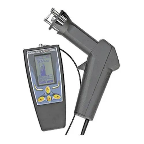 Конструктивно Beton Pro Condtrol состоит из собственно склерометра и электронного блока, которые соединены между собой кабелем. Благодаря этому ударные воздействия практически не оказывают влияния на электронику измерителя, что положительно влияет на долговечность прибора.