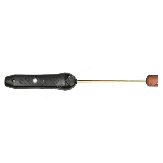 Беспроводный высокотемпературный смарт-зонд ТЕХНО-АС СЗПВВ.500 выполнен в виде мобильного моноблочного изделия с автономным питанием. Электронная плата с аккумулятором размещена в корпусе-ручке, а контактный измерительный элемент – в ограничителе, на конце соединительного стержня, длина которого составляет 50 см. В качестве органа управления изделие оборудуется единственной кнопкой с комбинированными функциями, а для контроля текущего состояния прибора служит светодиодный индикатор. Подзаряд внутренней батареи производится через разъем micro-USB, который также можно использовать для внешнего питания прибора при работе в продолжительном режиме.