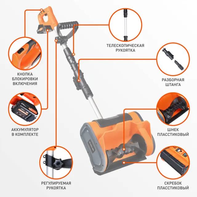 Аксессуары для Снегоуборщик аккумуляторный ручной Patriot PE 1003 UES с 2хАКБ 2 Ач + ЗУ 2А