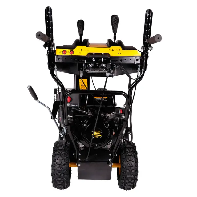 Запуск агрегата может быть осуществлен как вручную, так и с помощью электростартера. Такая гибкость позволяет выбрать удобный для вас способ запуска и облегчает работу снегоуборщика в любых условиях.