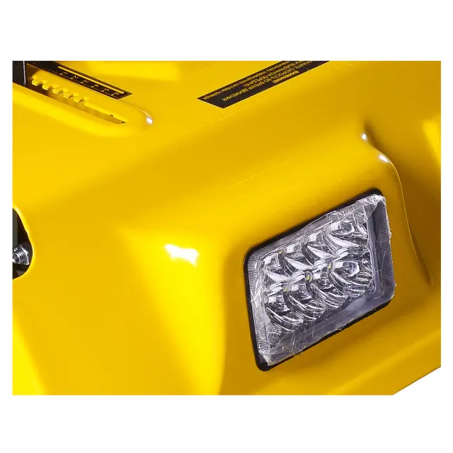 На рукоятке закреплена галогенная фара для работы в темное время суток или пасмурную погоду. Наклон ковша настраивается рычагом на боку корпуса. Всего доступно 3 ступени – для очистки рыхлого снега, для уборки сугробов и наледи, парковочная позиция. Колеса оснащены механизмом блокировки, что позволяет избежать пробуксовки на скользкой поверхности.