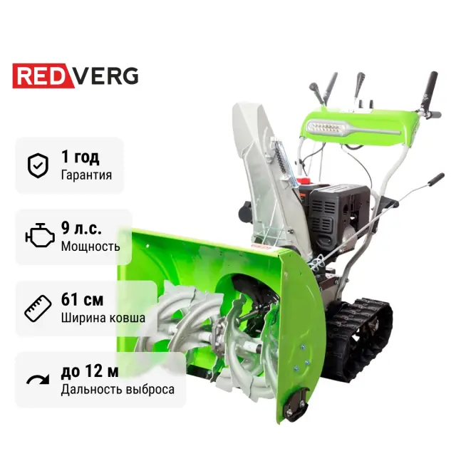 Снегоуборщик бензиновый самоходный REDVERG RD-SB61/9TE оснащен мощным бензиновым двигателем 9 л.с., который обеспечивает высокую производительность даже в условиях сильных морозов. Вы можете быть уверены, что агрегат справится с любыми снежными завалами, не теряя своей эффективности.