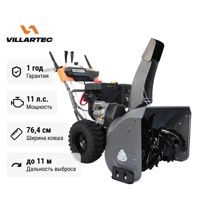 Снегоуборщик бензиновый самоходный Villartec WB1176E(DA) - мощный и надежный инструмент для эффективной уборки снега на средних и больших участках. Он оснащен зимним двигателем LONCIN мощностью 11 л.с., способным запускаться при отрицательных температурах до минус 30 градусов по Цельсию. Это гарантирует надежную работу даже в самые суровые зимние условия.