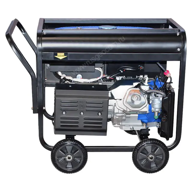 Съемный транспортировочный комплект позволяет перемещать сварочный генератор TSS GGW 6.0/250ED-R по рабочей площадке силами одного человека. Рамная конструкция с дополнительными накладками надежно защищает элементы агрегата от случайных ударов, не препятствуя доступу к компонентам и узлам для осмотра и обслуживания. Запуск двигателя возможен как вручную, так и от электрического стартера.