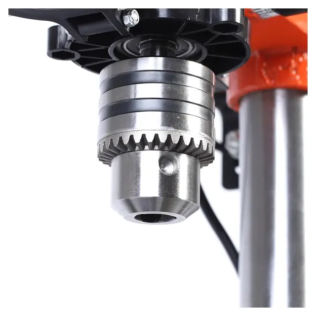 Одной из ключевых особенностей модели является вертикальное перемещение рабочего стола, осуществляемое с помощью удобной вращающейся рукоятки. Это решение позволяет точно дозировать подачу инструмента, что особенно актуально при работе с различными материалами. Мастера могут легко настраивать глубину сверления, что обеспечивает максимальную гибкость и контроль над процессом.