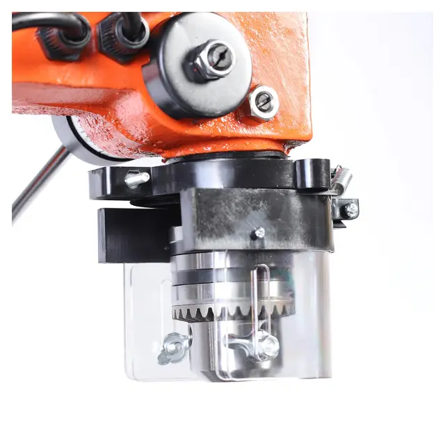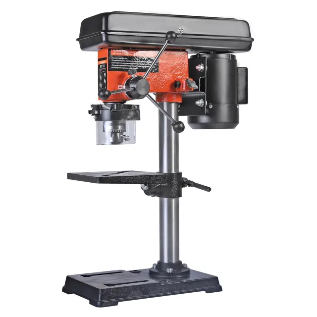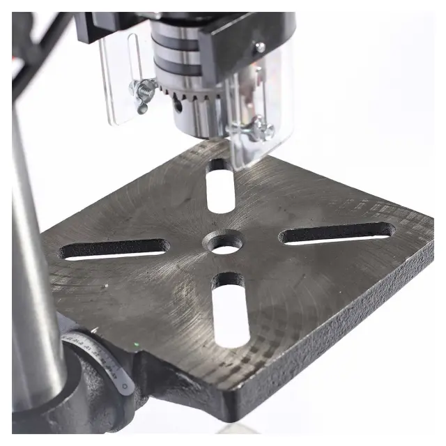 Сверлильный станок оснащен надежными тисками, которые обеспечивают стабильную фиксацию обрабатываемой детали. Это позволяет избежать смещения заготовки во время сверления, что критично для достижения высокой точности. Тиски легко настраиваются и подходят для различных размеров деталей, что делает процесс работы более удобным и эффективным.