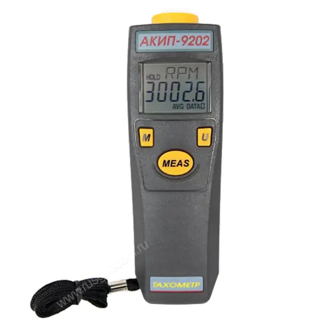 Тахометр АКИП-9202 представляет собой портативный цифровой прибор, предусматривающий два метода измерения скорости вращения. Первый бесконтактный способ позволяет определять частоту вращения до 100 000 об/мин. С помощью контактного метода тахометр АКИП-9202 регистрирует частоту вращения до 25 000 об/мин, а также скорость линейного перемещения до 2500 м/мин. Точность измерений составляет 0,1 об/мин при скорости до 10 000 об/мин и всего 1 об/мин при более высокой скорости вращения.