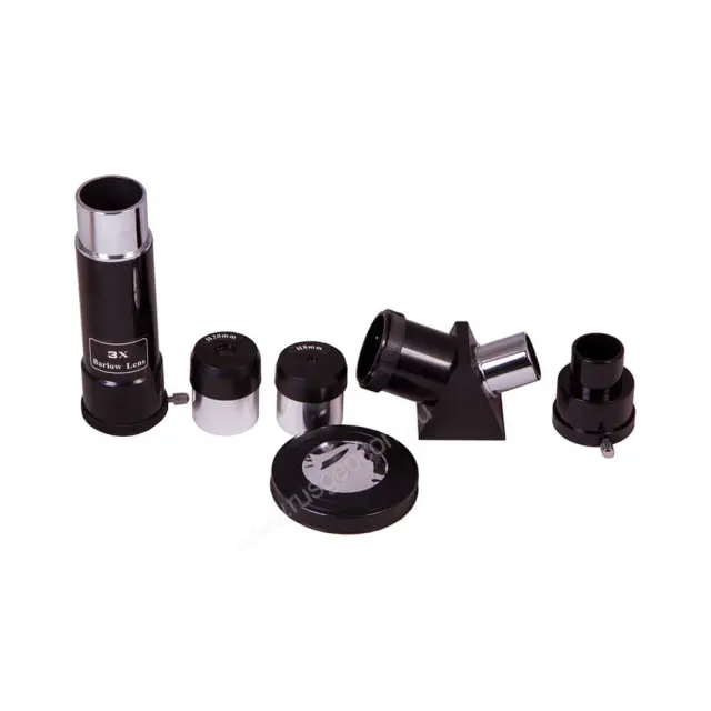 - В комплекте два окуляра с разной кратностью приближения, искатель с красной точкой, диагональное зеркало 90 °;