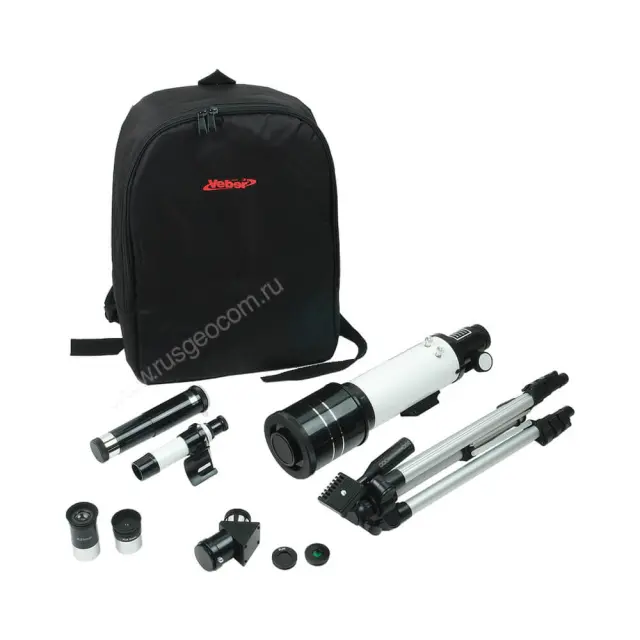 Весь комплект находится в рюкзаке. Бережное размещение трубы, треноги и комплекта принадлежностей обеспечивают мягкие амортизирующие стенки, карманы и фиксирующие стяжки.