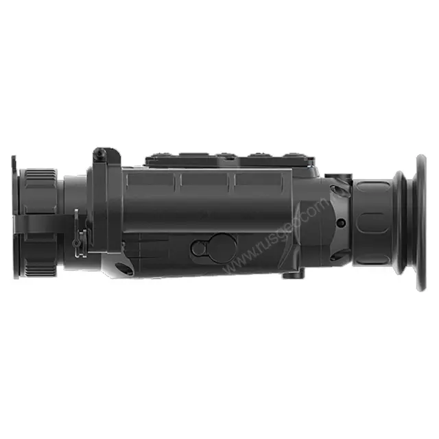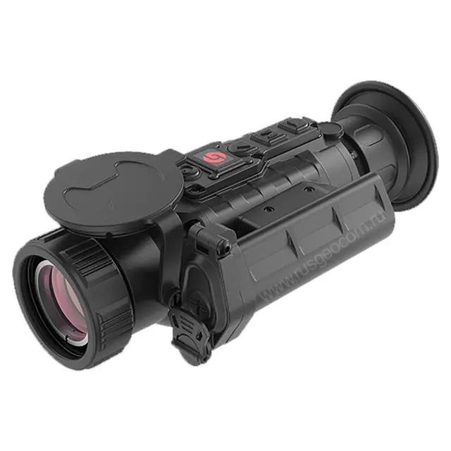 Вес прибора – 540 г, длина – 16 см, класс водонепроницаемости IP67. Насадка способна выдерживать мощную отдачу после выстрела, а также удары и температуру до – 30 °C. Тепловизионная насадка Guide TA621 оснащена инфракрасным детектором VOx с разрешением 640x480 px и шагом 17 мкм.