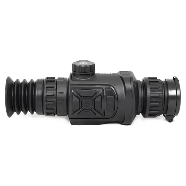 Прицел оснащен высококачественным германиевым объективом с фокусным расстоянием 35 мм и светосилой F1.0. Настройка резкости осуществляется с помощью удобного низкопрофильного кольца на объективе, что обеспечивает быструю и точную фокусировку. Начальное увеличение составляет 3.1х, а функция цифрового зума позволяет плавно или дискретно увеличивать изображение от 1х до 8х, достигая максимального увеличения 24.8х.